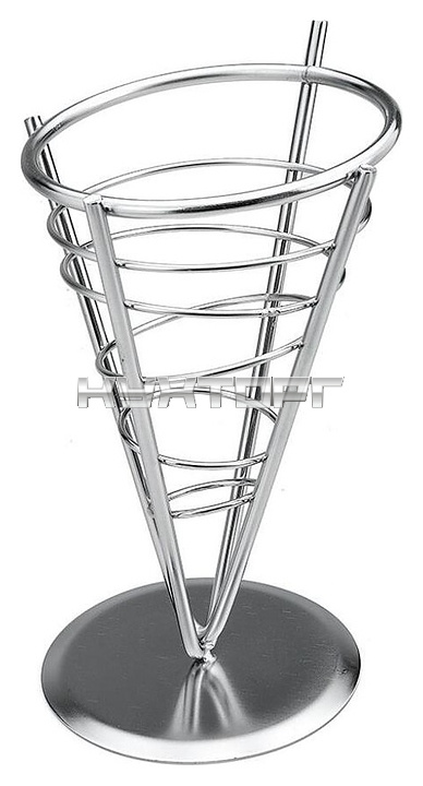 _Корзинка P.L. Proff Cuisine SS59-CB Конус используется на предприятиях общественного питания для подачи картофеля фри, корндогов, наггетсов и других аналогичных блюд. Емкость конической формы оснащена решетчатым бортом и устойчивым круглым основанием. Изделие выполнено из нержавеющей стали с серебристой поверхностью.
