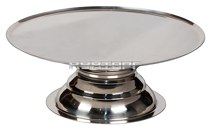 _Подставка для торта P.L. Proff Cuisine 81241027 используется на предприятиях общественного питания и в домашних условиях для размещения тортов, пирожных и других кондитерских изделий в процессе сервировки стола. Модель оснащена рабочей поверхностью круглой формы и фигурной ножкой на круглом основании. Изделие выполнено из нержавеющей стали.
