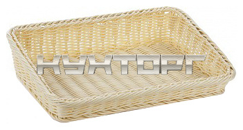 Корзинка Клен Beige 5450 предназначена для выкладки хлеба, овощей и фруктов на предприятиях общественного питания и торговли. Изделие имеет прямоугольную форму, скошенные борта и выполнено из пластика бежевого цвета.