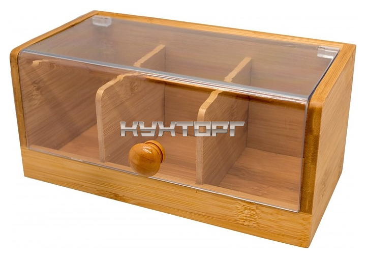 _Контейнер_ Vin Bouquet FIH 677 используется на предприятиях общественного питания и торговли, в частных домах и квартирах для хранения и демонстрации пакетиков чая. Модель оснащена 3 отделениями и прозрачной крышкой. Контейнер выполнен из натурального бамбука, крышка - из пластика.