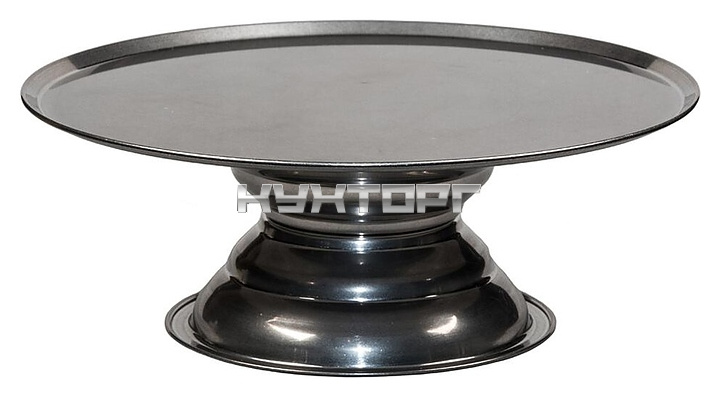 _Подставка для торта P.L. Proff Cuisine 81244019 используется на предприятиях общественного питания и в домашних условиях для размещения тортов, пирожных и других кондитерских изделий в процессе сервировки стола. Модель оснащена рабочей поверхностью круглой формы и фигурной ножкой на круглом основании. Изделие выполнено из нержавеющей стали с винтажным покрытием.