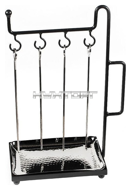 Набор для барбекю P.L. Proff Cuisine 73038060 / SG-82635 (A) используется на предприятиях общественного питания и в домашних условиях для приготовления шашлыка и аналогичных блюд. Набор состоит из 4 шампуров, подставки с 4 крюками, рукояткой и съемным прямоугольным поддоном с рифленой поверхностью. Подставка выполнена из металла с черным покрытием, шампуры и поддон– из металла с серебристой поверхностью.