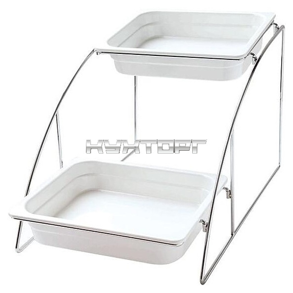 _Подставка P.L. Proff Cuisine 81200572 GN 1/2 используется на предприятиях общественного питания и торговли для размещения гастроемкостей и лучшей презентации их содержимого потенциальным покупателям. Модель имеет 2 яруса. Изделие выполнено из металла.