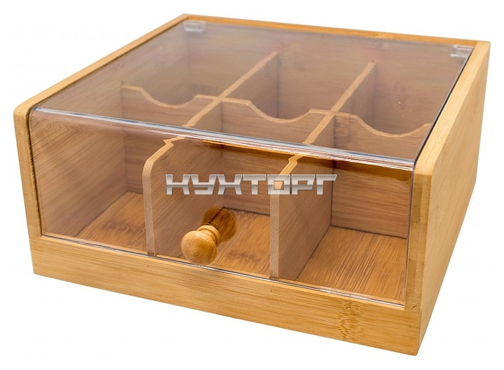 _Контейнер_ Vin Bouquet FIH 678 используется на предприятиях общественного питания и торговли, в частных домах и квартирах для хранения и демонстрации пакетиков чая. Модель оснащена 6 отделениями и прозрачной крышкой. Контейнер выполнен из натурального бамбука, крышка - из пластика.