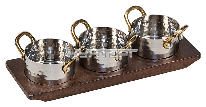 Набор соусников P.L. Proff Cuisine 81241062 используется на предприятиях общественного питания и торговли, в частных домах и квартирах для сервировки и подачи соусов или подлив на стол. Соусники оснащены ручками. Изделия выполнены из нержавеющей стали.