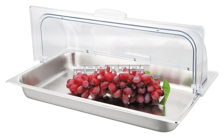 Поднос Sunnex X88117 используется на предприятиях общественного питания а также в домашних условиях в процессе сервировки шведского стола для выкладки различных продуктов. Модель оснащена лотком формата GN1/1 и куполом с откидной крышкой. Лоток выполнен из нержавеющей стали, купол и крышка – из ударопрочного прозрачного пластика.
