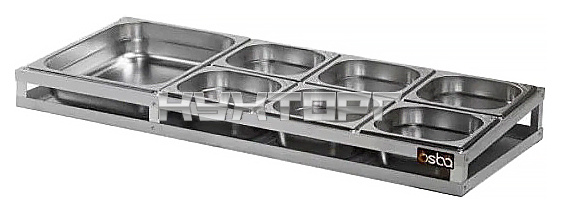 Подставка для гастроемкостей Osba 6+1 предназначена для размещения гастроемкостей на предприятиях общественного питания и торговли. Каркас выполнен из алюминиевого уголка.