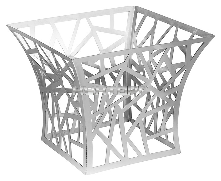 Фуршетная подставка Luxstahl Геометрия 300х300х240 мм используется для размещения подносов с фруктами, закусками, десертами при организации шведского стола на различных мероприятиях и предприятиях общественного питания. Модель квадратного сечения оснащена изогнутыми стенками с декоративной перфорацией. Изделие выполнено из нержавеющей стали с серебристой поверхностью.