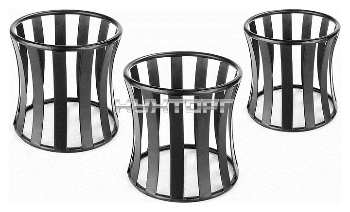 Набор из 3 фуршетных подставок P.L. Proff Cuisine SG-79666(S3) используется для размещения подносов и блюд с фруктами, закусками, десертами при организации шведского стола на различных мероприятиях и предприятиях общественного питания. Легкая устойчивая конструкция состоит из горизонтальных колец и слегка вогнутых вертикальных стоек в виде тонких полос.