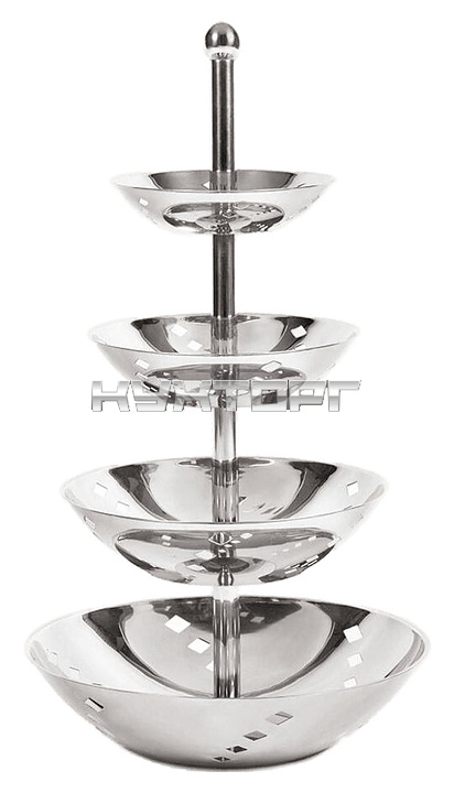 Этажерка P.L. Proff Cuisine 99000050 используется на предприятиях общественного питания и торговли, в барах, ресторанах и кафе для сервировки и выкладки различных продуктов. Модель имеет 4 яруса. Изделие выполнено из нержавеющей стали.