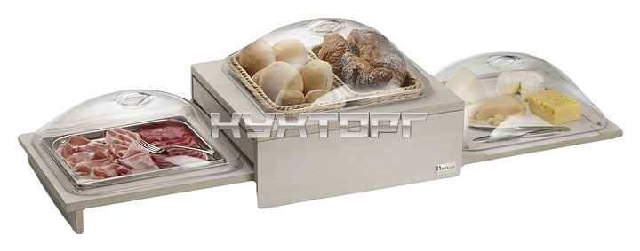 Подставка-трансформер_ Pintinox 51602400 используется на предприятиях общественного питания и торговли, в барах, ресторанах и кафе для подачи мясных нарезанных продуктов, хлеба, круассанов и сыров на шведский стол.