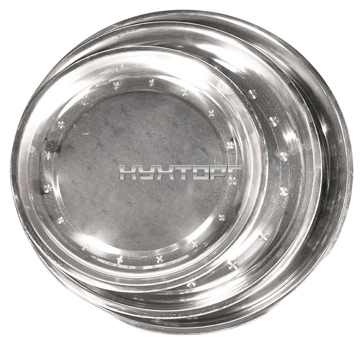 Поднос P.L. Proff Cuisine 95001083 используется на предприятиях общественного питания и торговли, в частных домах и квартирах для сервировки, переноски посуды и подачи различных блюд на стол. Модель имеет круглую форму. Изделие выполнено из нержавеющей стали.