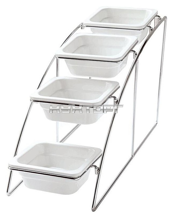 _Подставка P.L. Proff Cuisine 81200574 GN 1/6 используется на предприятиях общественного питания и торговли для сервировки и размещения гастроемкостей. Модель имеет 4 яруса. Изделие выполнено из металла.