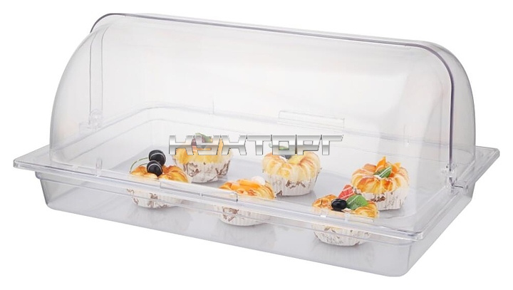 Поднос Sunnex X887117 используется на предприятиях общественного питания а также в домашних условиях в процессе сервировки шведского стола для выкладки различных продуктов. Модель оснащена лотком формата GN1/1 и куполом с откидной крышкой. Изделие выполнено из ударопрочного прозрачного пластика.