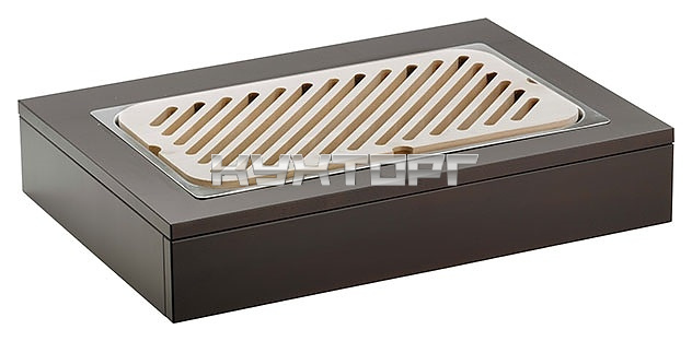 Буфетная подставка Pintinox Buffet 51136800 модульной системы Buffet Сlassic используется на предприятиях общественного питания и торговли, а также в домашних условиях при организации шведского стола для нарезки и выкладки хлеба. Корпус выполнен из мелкофракционной древесностружечной плиты (МДФ) с покрытием цвета венге, поддон – из нержавеющей стали, доска – из светлого дерева.