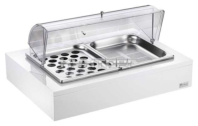 Буфетная станция Pintinox Buffet 511B2830 модульной системы Buffet Сlassic используется на предприятиях общественного питания и торговли, а также в домашних условиях для выкладки и хранения предварительно охлажденных яиц и овощей. Корпус выполнен из мелкофракционной древесностружечной плиты (МДФ) с покрытием белого цвета, купол и крышка – из ударопрочного прозрачного поликарбоната, поддоны и лотки – из нержавеющей стали.