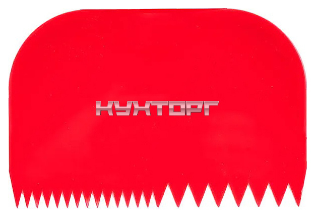 Кондитерский скребок Paderno 47621-06 используется на предприятиях общественного питания и в производственных цехах для выравнивания крема и шоколада на плоской поверхности кондитерских изделий. Изделие выполнено из пластика красного цвета и имеет зубцы 2 типов.