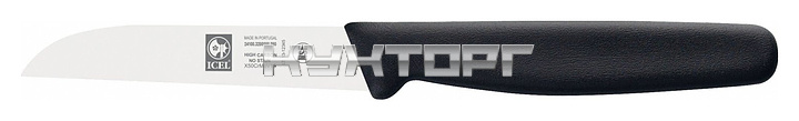 Нож для овощей ICEL Junior Vegetable knife 24100.3200000.090 оснащен эргономичной ручкой черного цвета из приятного на ощупь пластика Proflex, устойчивого к высоким температурам и воздействию агрессивных элементов, и заточенным вручную лезвием, выполненным из высококачественной нержавеющей стали X50CrMoV15 с добавлением хрома, молибдена и ванадия. Твердость стали, закаленной по специальной технологии, составляет более 56 HRC. Ручка, изготовленная по системе инжекции, имеет специальную антибактериальную защиту Microban.