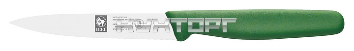 Нож для овощей ICEL Junior Paring knife 24500.3000000.100 оснащен эргономичной ручкой зеленого цвета из полипропилена, устойчивого к высоким температурам и внешнему воздействию, и заточенным вручную лезвием, выполненным из высококачественной нержавеющей стали X50CrMoV15 с добавлением хрома, молибдена и ванадия. Твердость стали, закаленной по специальной технологии, составляет более 56 HRC. Ручка изготовлена по системе инжекции.