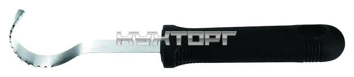 Нож P.L. Proff Cuisine Chef Line GS-10829S используется на предприятиях пищевой промышленности, общественного питания и торговли, а также в домашних условиях для работы с твердым сливочным маслом, маргарином и аналогичными продуктами. Модель оснащена изогнутой в виде крюка головкой с зубчатой кромкой и нескользящей рукояткой с ограничителем для ладони и отверстием для подвешивания. Головка выполнена из нержавеющей стали, рукоятка – из полимера черного цвета.