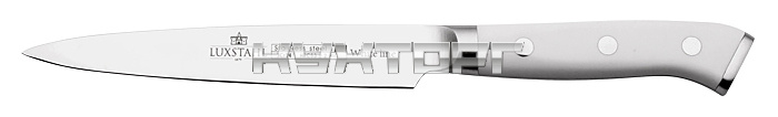 Универсальный нож Luxstahl White Line XF-POM BS141 используется на предприятиях общественного питания и торговли, в частных домах и квартирах. Лезвие выполнено из стали 3Cr14, рукоять - из белого пластика с клепками.