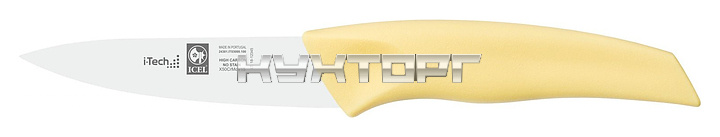 Нож для овощей ICEL I-Tech Paring knife 24301.IT03000.100 оснащен эргономичной ручкой желтого цвета из полипропилена, устойчивого к высоким температурам и внешнему воздействию, и заточенным вручную лезвием, выполненным из высококачественной нержавеющей стали X50CrMoV15 с добавлением хрома, молибдена и ванадия.Твердость стали, закаленной по специальной технологии, составляет более 56 HRC.