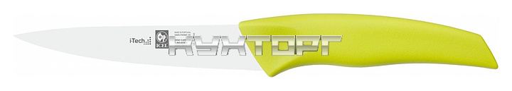 Нож для овощей ICEL I-Tech Chef's knife 24602.IT10000.180 оснащен эргономичной ручкой салатового цвета из полипропилена, устойчивого к высоким температурам и внешнему воздействию, и заточенным вручную лезвием, выполненным из высококачественной нержавеющей стали X50CrMoV15 с добавлением хрома, молибдена и ванадия.Твердость стали, закаленной по специальной технологии, составляет более 56 HRC.