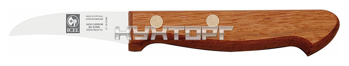 Нож для чистки овощей ICEL Tradicao Peeling knife 23100.3214000.060 оснащен эргономичной ручкой из дерева и, заточенным вручную лезвием, выполненным из высококачественной нержавеющей стали X50CrMoV15 с добавлением хрома, молибдена и ванадия. Твердость стали, закаленной по специальной технологии, составляет более 56 HRC. Изделие выполнено методом ковки. Ручка соединена с лезвием посредством заклепок из нержавеющей стали.