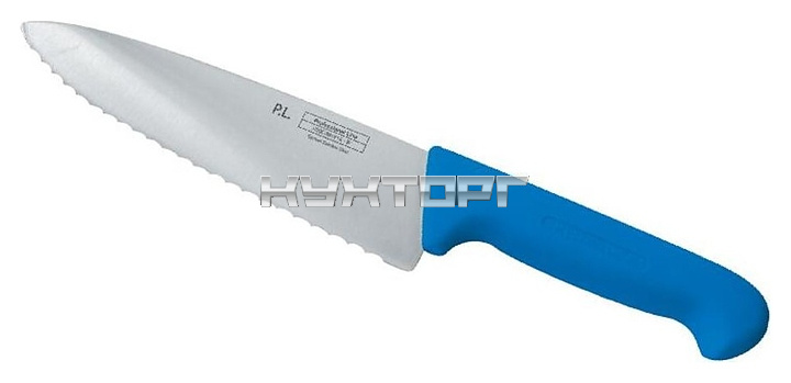 Поварской нож P.L. Proff Cuisine Pro-Line 99002255 используется на предприятиях общественного питания и торговли, в частных домах и квартирах для нарезки продуктов. Лезвие выполнено из нержавеющей стали, ручка - из пластика.