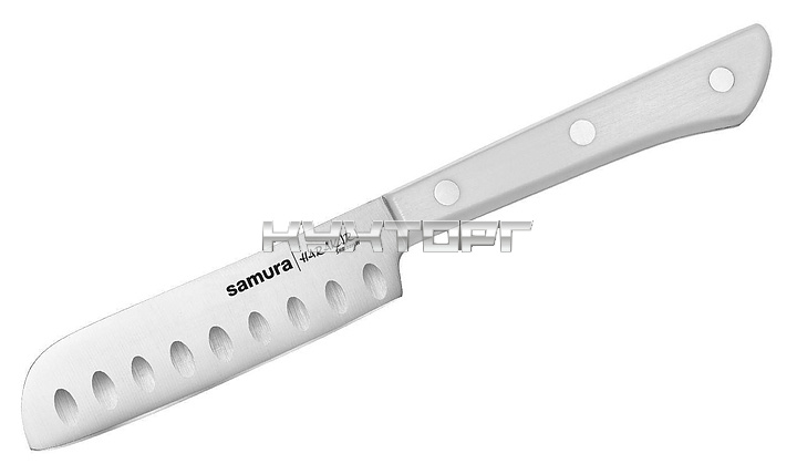 Японский кухонный нож Samura Harakiri SHR-0015W предназначен для нарезки различных продуктов на предприятиях общественного питания и торговли, в частных домах и квартирах. Лезвие выполнено из коррозионно-стойкой однослойной стали AUS-8, ручка - из ABS-пластика.