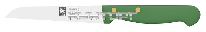 Нож для овощей ICEL Technik Vegetable knife 27500.3201000.100 оснащен эргономичной ручкой зеленого цвета из полиоксиметилена, устойчивого к высоким температурам, и заточенным вручную лезвием, выполненным из высококачественной нержавеющей стали X50CrMoV15 с добавлением хрома, молибдена и ванадия. Твердость стали, закаленной по специальной технологии, составляет более 56 HRC. Ручка соединена с лезвием посредством заклепок из нержавеющей стали.