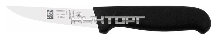 Разделочный нож ICEL Safe Rabbit knife 28100.3170000.100 оснащен эргономичной ручкой черного цвета из приятного на ощупь пластика Proflex, устойчивого к высоким температурам и воздействию агрессивных элементов, и заточенным вручную лезвием, выполненным из высококачественной нержавеющей стали X50CrMoV15 с добавлением хрома, молибдена и ванадия. Твердость стали, закаленной по специальной технологии, составляет более 56 HRC. Ручка, изготовленная по системе инжекции, имеет специальную антибактериальную защиту Microban.