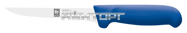 Обвалочный нож ICEL Poly Boning knife 24600.3918000.150 оснащен эргономичной ручкой синего цвета из полипропилена, устойчивого к высоким температурам и внешнему воздействию, и заточенным вручную изогнутым лезвием, выполненным из высококачественной нержавеющей стали X50CrMoV15 с добавлением хрома, молибдена и ванадия. Твердость стали, закаленной по специальной технологии, составляет более 56 HRC.