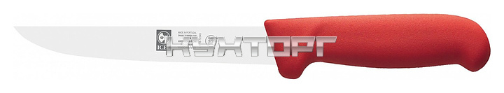 Обвалочный нож ICEL Poly Boning knife 24400.3199000.150 оснащен эргономичной ручкой красного цвета из полипропилена, устойчивого к высоким температурам и внешнему воздействию, и заточенным вручную широким лезвием, выполненным из высококачественной нержавеющей стали X50CrMoV15 с добавлением хрома, молибдена и ванадия. Твердость стали, закаленной по специальной технологии, составляет более 56 HRC.
