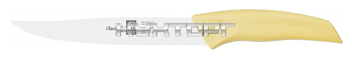 Нож для мяса ICEL I-Tech Carving knife 24301.IT14000.180 оснащен эргономичной ручкой желтого цвета из полипропилена, устойчивого к высоким температурам и внешнему воздействию, и заточенным вручную лезвием, выполненным из высококачественной нержавеющей стали X50CrMoV15 с добавлением хрома, молибдена и ванадия. Твердость стали, закаленной по специальной технологии, составляет более 56 HRC.