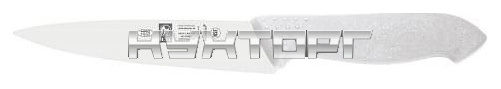 Кухонный нож ICEL Horeca Prime Utility knife оснащен эргономичной ручкой белого цвета из приятного на ощупь пластика Proflex, устойчивого к высоким температурам и воздействию агрессивных элементов, и заточенным вручную лезвием, выполненным из высококачественной нержавеющей стали X50CrMoV15 с добавлением хрома, молибдена и ванадия. Твердость стали, закаленной по специальной технологии, составляет более 56 HRC. Ручка, изготовленная по системе инжекции, имеет специальную антибактериальную защиту Microban.