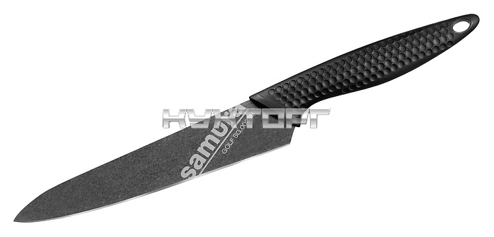 Универсальный нож Samura Golf Stonewash SG-0023B предназначен для нарезки различных продуктов на предприятиях общественного питания и торговли, в частных домах и квартирах. Эргономичная рукоятка стилизована под ребристую поверхность мяча для игры в гольф. Лезвие выполнено из качественной японской специализированной однослойной стали AUS-8 и имеет матовую грубую поверхность благодаря обработке методом галтовки, ручка - из высококачественного полипропилена.