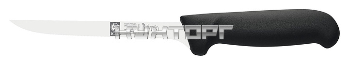 Обвалочный нож ICEL Safe Boning knife 28100.3973000.150 оснащен эргономичной ручкой черного цвета из приятного на ощупь пластика Proflex, устойчивого к высоким температурам и воздействию агрессивных элементов, и заточенным вручную гибким лезвием, выполненным из высококачественной нержавеющей стали X50CrMoV15 с добавлением хрома, молибдена и ванадия. Твердость стали, закаленной по специальной технологии, составляет более 56 HRC. Ручка, изготовленная по системе инжекции, имеет специальную антибактериальную защиту Microban.