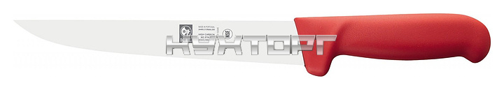 Обвалочный нож ICEL Poly Boning knife 24400.3139000.200 оснащен эргономичной ручкой красного цвета из полипропилена, устойчивого к высоким температурам и внешнему воздействию, и заточенным вручную широким лезвием, выполненным из высококачественной нержавеющей стали X50CrMoV15 с добавлением хрома, молибдена и ванадия. Твердость стали, закаленной по специальной технологии, составляет более 56 HRC.