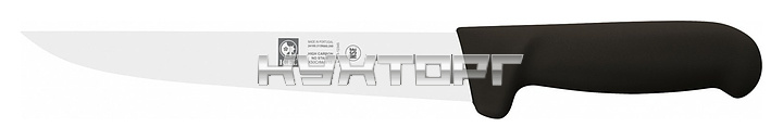 Обвалочный нож ICEL Poly Boning knife 24100.3139000.200 оснащен эргономичной ручкой черного цвета из полипропилена, устойчивого к высоким температурам и внешнему воздействию, и заточенным вручную широким лезвием, выполненным из высококачественной нержавеющей стали X50CrMoV15 с добавлением хрома, молибдена и ванадия. Твердость стали, закаленной по специальной технологии, составляет более 56 HRC.