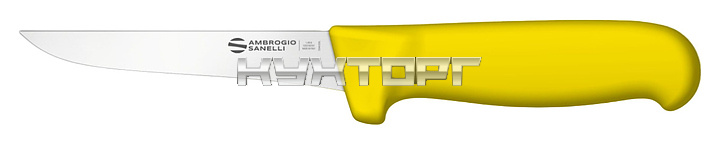 Обвалочный нож Sanelli Ambrogio SD07012Y серии Supra Colore предназначен для удаления костей и кожи от сырого мяса и птицы на предприятиях общественного питания и торговли, а также в частных домах и квартирах. Лезвие выполнено из высокопрочной коррозионностойкой нержавеющей стали x60CrMoV, ручка - из полипропилена.