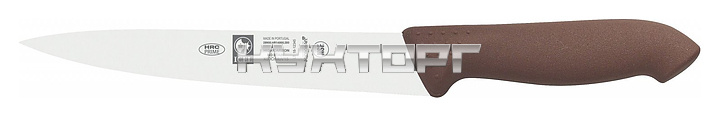 Нож для мяса ICEL Horeca Prime Carving knife 28900.HR14000.200 оснащен эргономичной ручкой коричневого цвета из приятного на ощупь пластика Proflex, устойчивого к высоким температурам и воздействию агрессивных элементов, и заточенным вручную лезвием, выполненным из высококачественной нержавеющей стали X50CrMoV15 с добавлением хрома, молибдена и ванадия. Твердость стали, закаленной по специальной технологии, составляет более 56 HRC. Ручка, изготовленная по системе инжекции, имеет специальную антибактериальную защиту Microban.