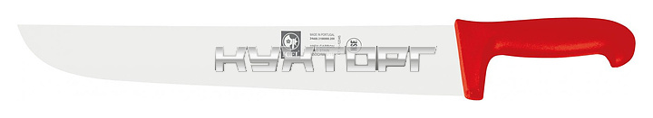 Нож для мяса ICEL Poly Butcher knife 24400.3100000.200 оснащен эргономичной ручкой красного цвета из полипропилена, устойчивого к высоким температурам и внешнему воздействию, и заточенным вручную лезвием, выполненным из высококачественной нержавеющей стали X50CrMoV15 с добавлением хрома, молибдена и ванадия. Твердость стали, закаленной по специальной технологии, составляет более 56 HRC.