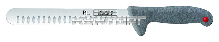 Поварской нож-слайсер P.L. Proff Cuisine Pro-Line 81240299 используется на предприятиях общественного питания и торговли, в частных домах и квартирах для тонкой нарезки продуктов на порционные кусочки. Модель оснащена цветными кнопками. Лезвие выполнено из нержавеющей стали, ручка - из пластика.