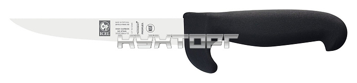 Обвалочный нож ICEL Protec Boning knife 28100.2179000.150 оснащен эргономичной ручкой черного цвета из приятного на ощупь пластика Proflex, устойчивого к высоким температурам и воздействию агрессивных элементов, и заточенным вручную лезвием, выполненным из высококачественной нержавеющей стали X50CrMoV15 с добавлением хрома, молибдена и ванадия. Твердость стали, закаленной по специальной технологии, составляет более 56 HRC. Ручка оснащена специальным выступом, защищающим руку от соскальзывания и имеет специальную антибактериальную защиту Microban.