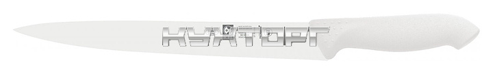 Нож для мяса ICEL Horeca Prime Carving knife 28200.HR14000.250 оснащен эргономичной ручкой белого цвета из приятного на ощупь пластика Proflex, устойчивого к высоким температурам и воздействию агрессивных элементов, и заточенным вручную лезвием, выполненным из высококачественной нержавеющей стали X50CrMoV15 с добавлением хрома, молибдена и ванадия. Твердость стали, закаленной по специальной технологии, составляет более 56 HRC. Ручка, изготовленная по системе инжекции, имеет специальную антибактериальную защиту Microban.