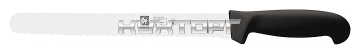 Нож для нарезки ICEL Practica Slicing knife 24100.3460000.250 оснащен эргономичной ручкой черного цвета из полипропилена, устойчивого к высоким температурам и внешнему воздействию, и заточенным вручную лезвием с волнистой кромкой, выполненным из высококачественной нержавеющей стали X50CrMoV15 с добавлением хрома, молибдена и ванадия. Твердость стали, закаленной по специальной технологии, составляет более 56 HRC.