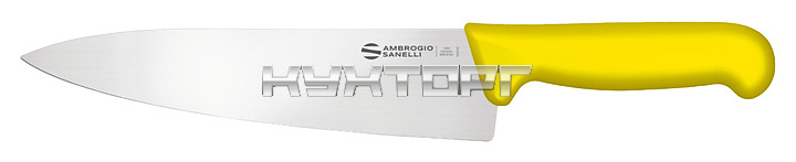 Кухонный нож Sanelli Ambrogio SC49020Y серии Supra Colore предназначен для нарезки овощей, зелени, курицы, больших кусков мяса и рыбы на предприятиях общественного питания и торговли, а также в частных домах и квартирах. Модель оснащена лезвием с напечатанным лазером логотипом с кодом продукта и номером партии. Система цветового кодирования ножей с присвоением каждому цвету определенной задачи облегчает работу на кухне и позволяет снизить риск перекрестного заражения. Изделие выполнено из высокопрочной коррозионностойкой нержавеющей стали NITRO-B, обогащенной азотом, углеродом, хромом, молибденом и ванадием, внутренняя часть ручки - из полипропилена, внешняя часть ручки - из SEBS с микросферами, повышающими противоскользящие свойства.