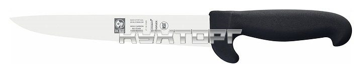 Мясницкий нож ICEL Protec Butcher knife 28100.2158000.200 оснащен эргономичной ручкой черного цвета из приятного на ощупь пластика Proflex, устойчивого к высоким температурам и воздействию агрессивных элементов, и заточенным вручную лезвием, выполненным из высококачественной нержавеющей стали X50CrMoV15 с добавлением хрома, молибдена и ванадия. Твердость стали, закаленной по специальной технологии, составляет более 56 HRC. Ручка оснащена специальным выступом, защищающим руку от соскальзывания и имеет специальную антибактериальную защиту Microban.