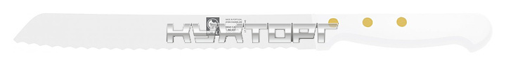 Нож для хлеба ICEL Technik Bread knife 27200.5322000.200 оснащен эргономичной ручкой белого цвета из полиоксиметилена, устойчивого к высоким температурам, и заточенным вручную лезвием с волнистой кромкой, выполненным из высококачественной нержавеющей стали X50CrMoV15 с добавлением хрома, молибдена и ванадия. Твердость стали, закаленной по специальной технологии, составляет более 56 HRC. Ручка соединена с лезвием посредством заклепок из нержавеющей стали.